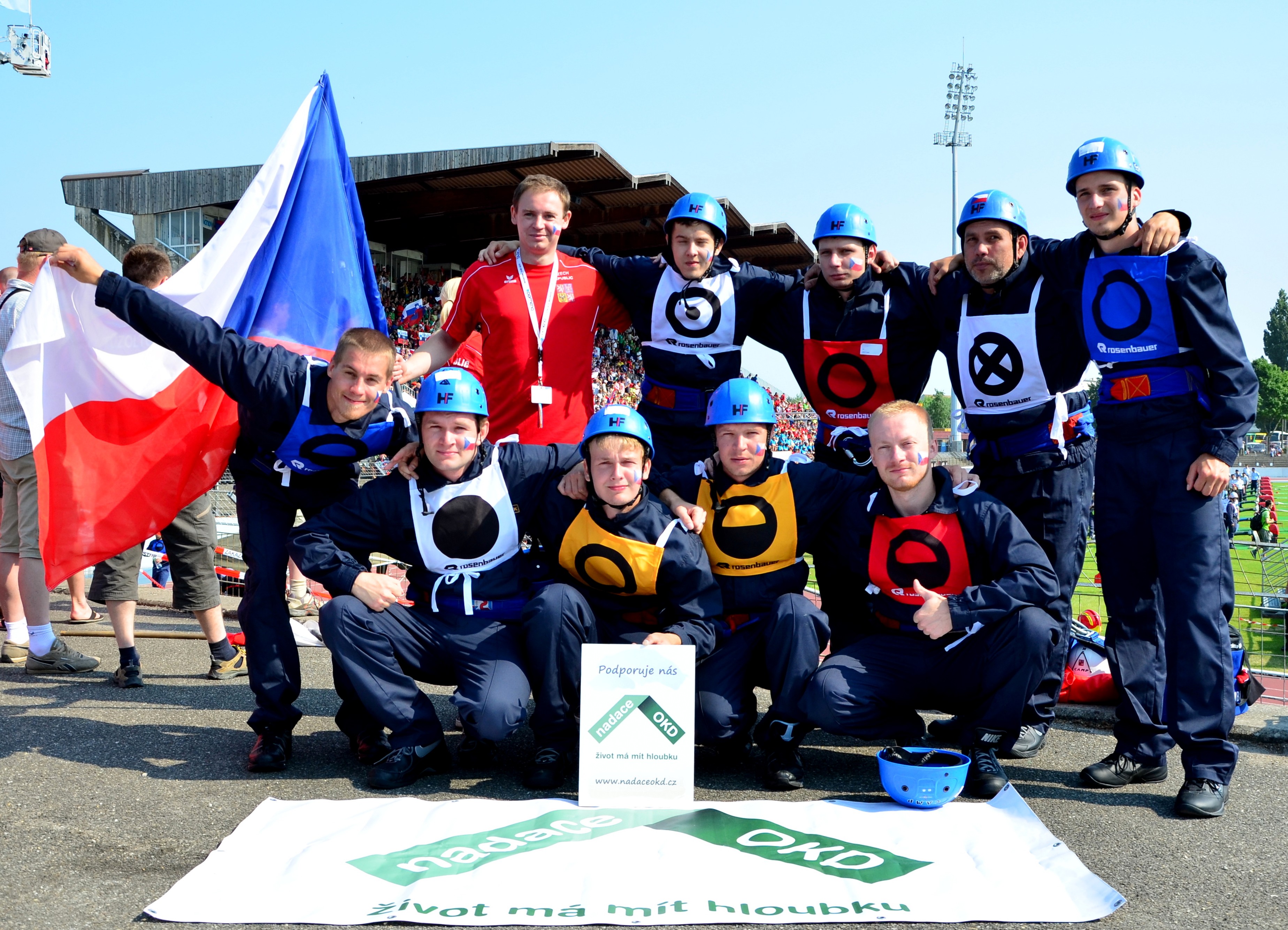 FRÝDEK-MÍSTEK – Až ve východofrancouzském Mulhouse byly vidět loga Nadace OKD a HBZS Ostrava. Vzala je s sebou desetičlenná frýdecko-místecká část české reprezentace na XV. Mezinárodní hasičské olypiádě CTIF, která v dresech pořízených z minigrantu Srdcovka vybojovala ve své kategorii zlato!