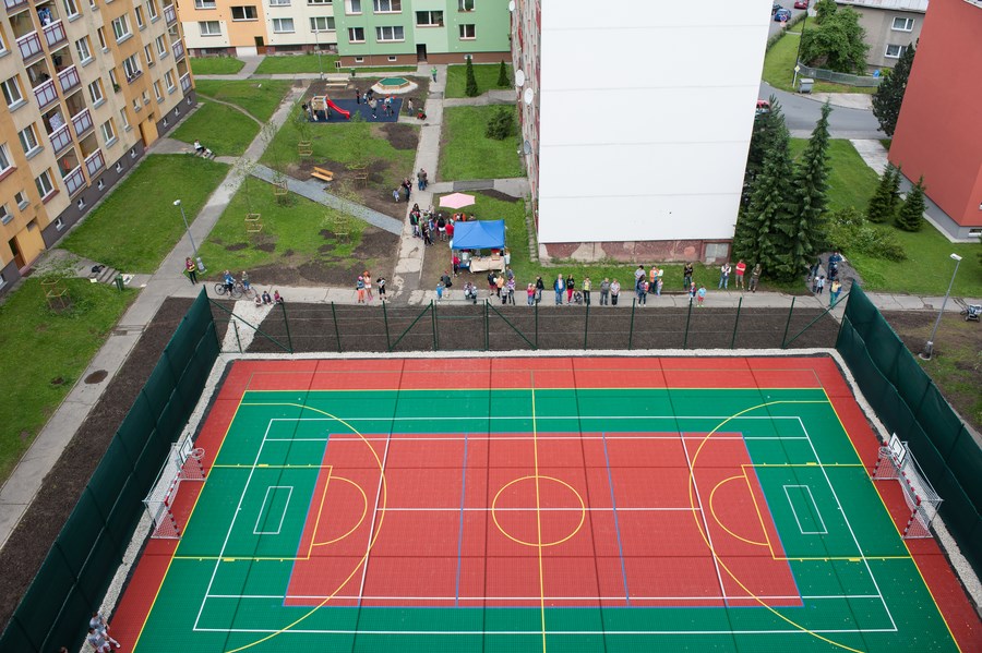 Hlavním cílem projektu je zkvalitnění života dětí žijících na sídlišti Karviná-Hranice. Jde o jedno z největších a nejanonymnějších míst v Karviné. Náplní projektu je vybudování víceúčelového dětského hřiště, které by se mohlo stát dominantou veřejného prostoru, a lákat tak děti, mládež a také rodiče s dětmi k aktivnímu trávení volného času. Uspořádání jednotlivých prvků dětského hřiště bude vycházet z požadavků obyvatel sídliště, kteří se budou na realizaci podílet.